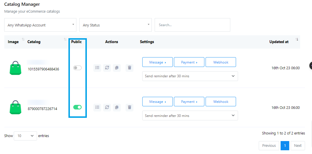 - You`ll find the catalog name and ID. There`s an option to enable or disable the public status.